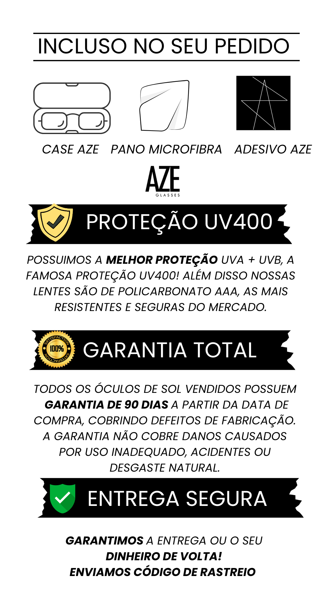 Proteção Solar: UV 400 - 100% UVA e UVB